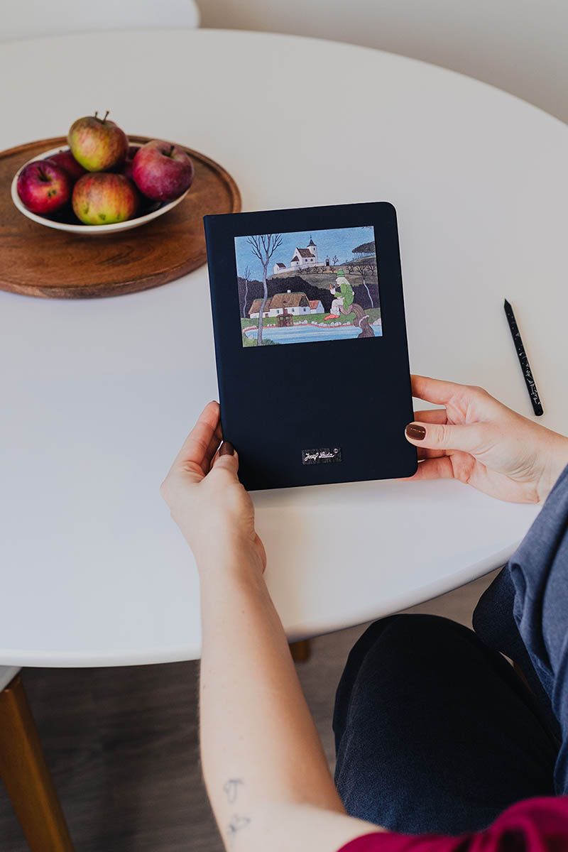 Az A5-ös jegyzetfüzet a Víziember motívumával elrepít a nyugodt tó partjára, ahol egy jókedvű kisember pipázik – pont úgy, ahogyan Josef Lada szeretett rajzolni. Ez a motívum ötvözi a folklórt a kedves humorral és nyugalommal, ami ideális a jegyzeteléshez és a kreatív pillanatokhoz.
